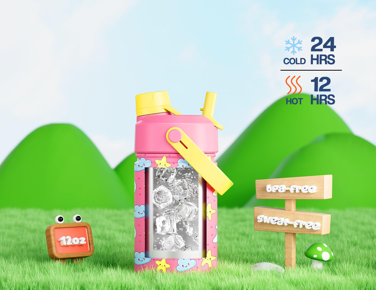 - All-Day Refreshment: Double-wall vacuum insulation keeps drinks cold for up to 24 hours or warm for 12. Whether it's water, juice, or cocoa, kids enjoy every sip at just the right temp.