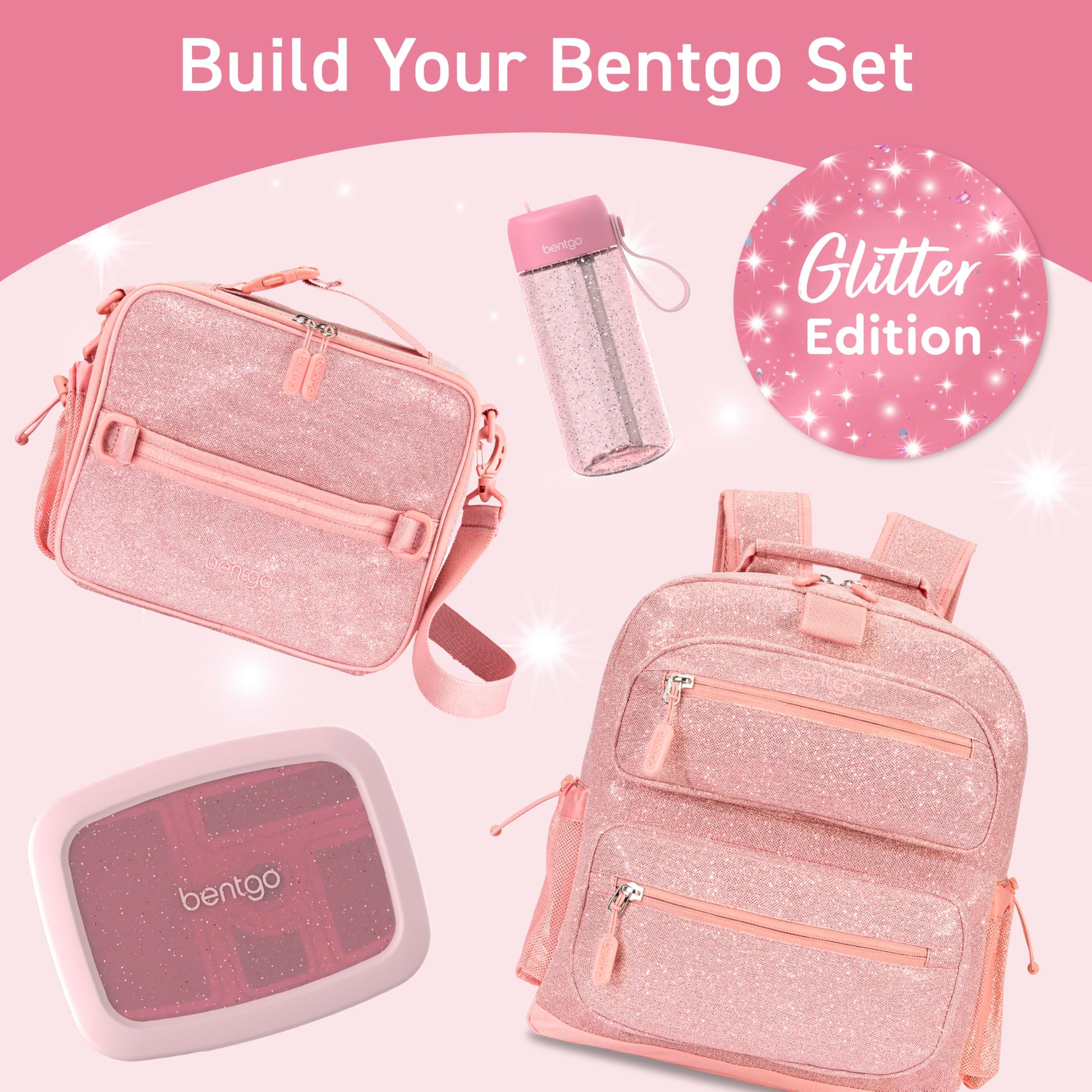 15 oz Bentgo Kids Water Bottle, Leak-Proof Durable Tritan, BPA-Free, Safe Sip Spout with Carry Handle, Dishwasher Safe, Glitter Edition Petal Pink, Ages 3+, School