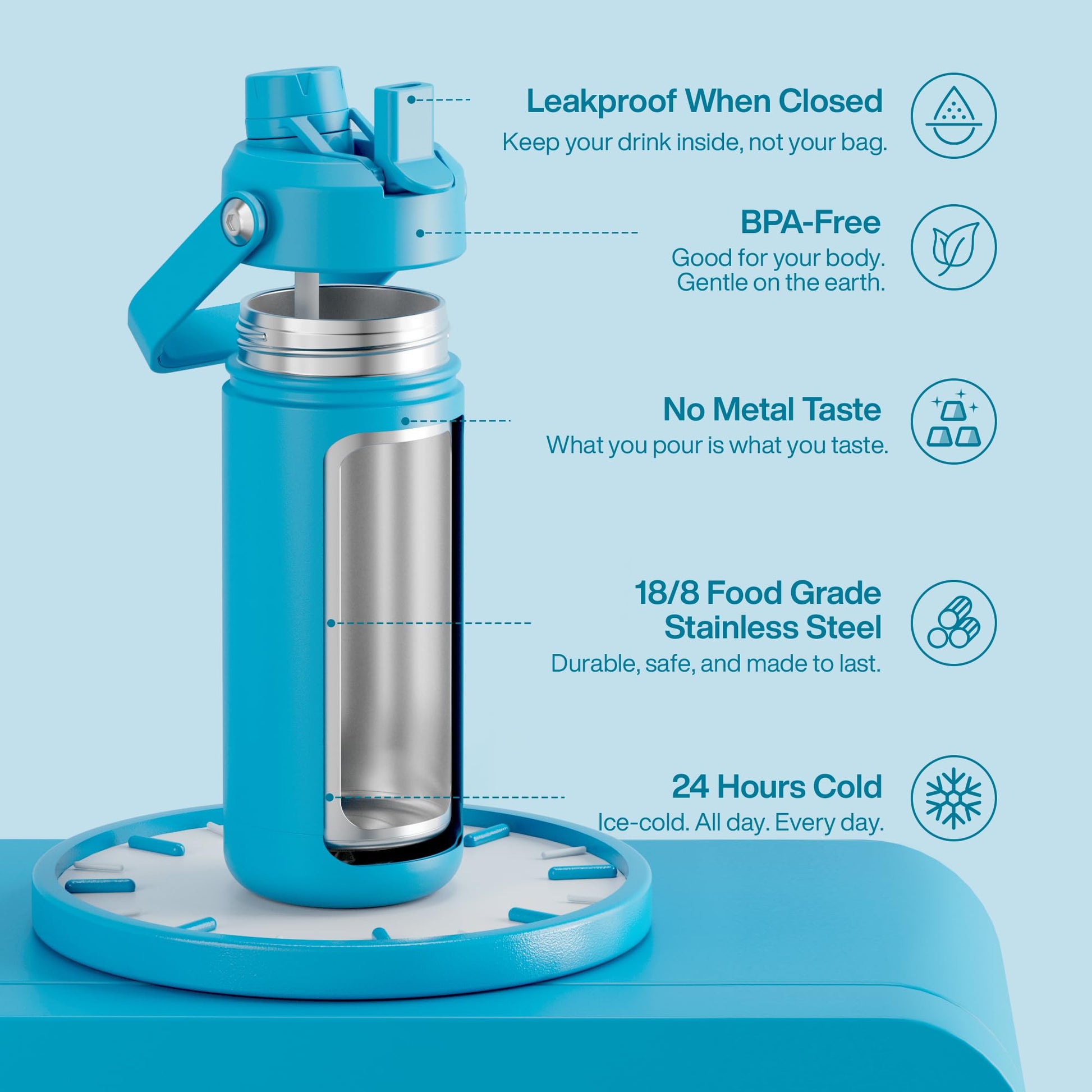 - Cold All Day Long: Our insulated water bottle keeps drinks cold for up to 24 hours. Double-wall stainless steel, zero condensation, just fresh hydration, wherever you go