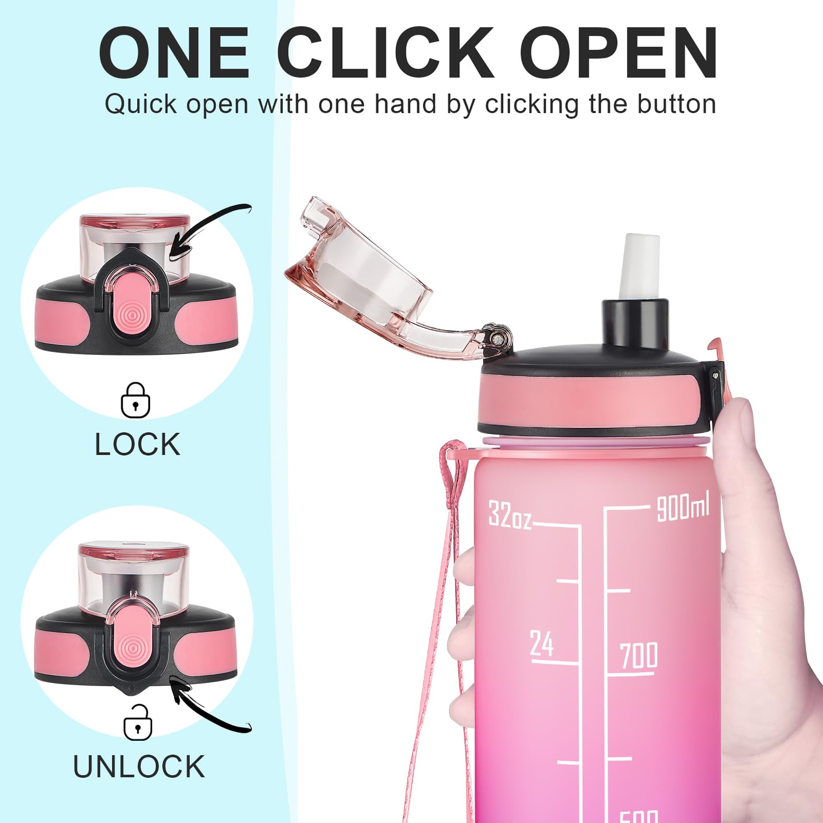 - 【Humanized Design】Water bottles with times to drink can quick open with one hand. The flip-top lid is used a secure lock, making it dust-free and leak-proof. Time water bottle is portable, light, and easy to use.