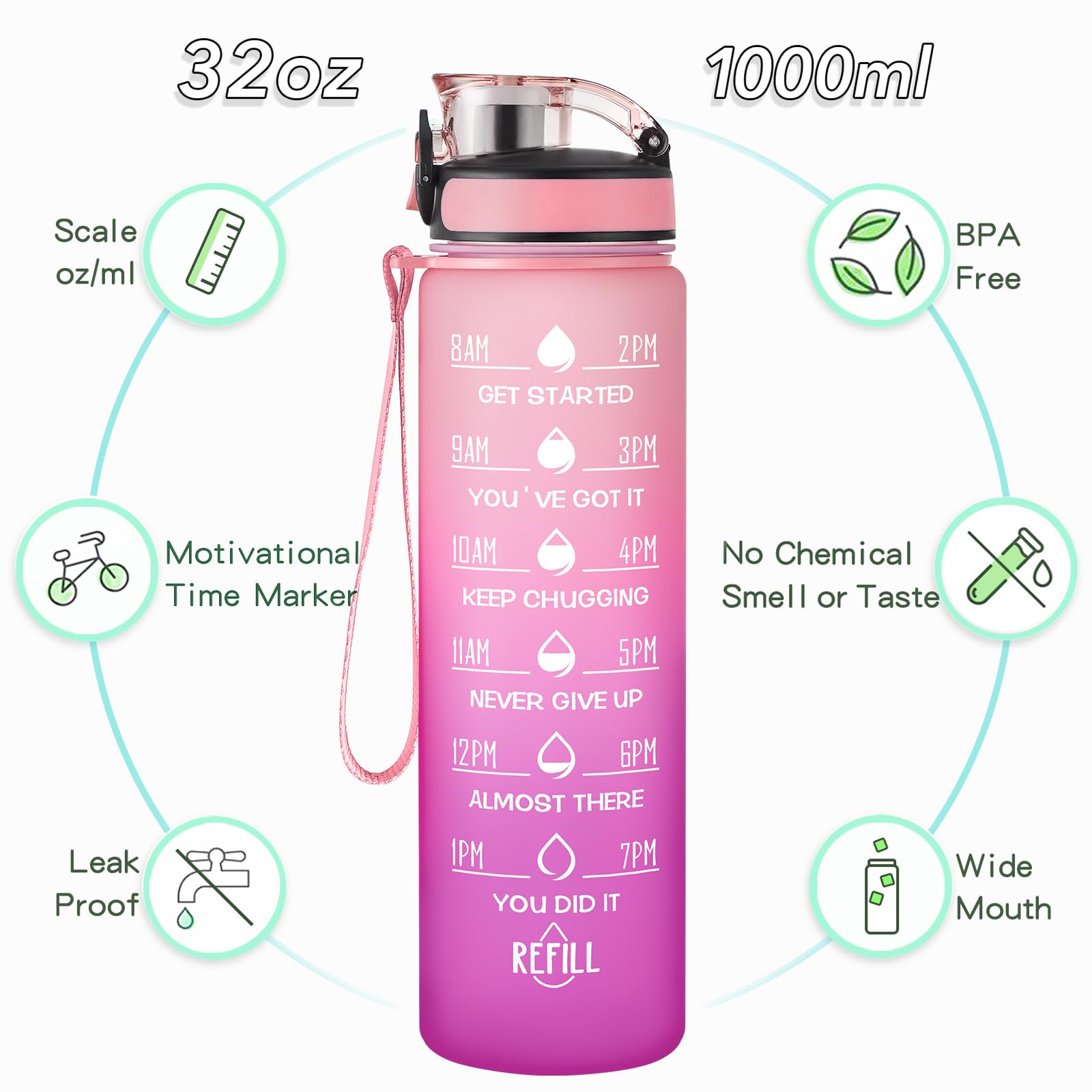 - 【Stay Motivated and Hydrated】32 oz water bottle with unique quote and time marker are inspirational, convenient for tracking your daily water intake and reminding you of being hydrated. Drinking bottles is suitable for any activities.