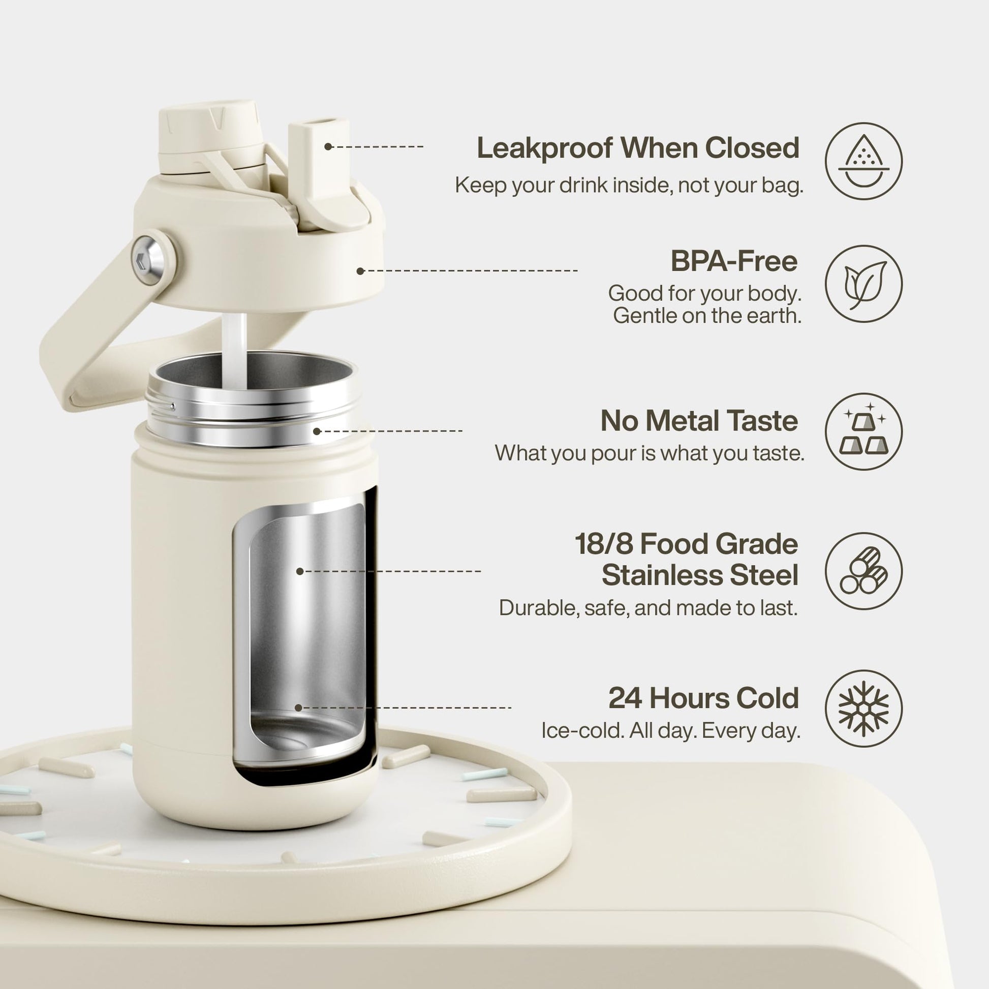 40 oz Insulated Stainless Steel Water Bottle with Two-Way Spout, Built-In Straw, Bucket Handle, BPA-Free, Leak-Proof, Lightly Toasted